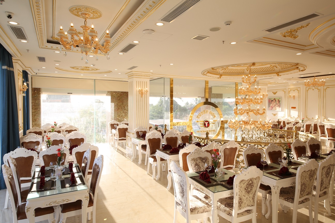 - Sức chứa 100 khách, với thực đơn Âu – Á phong phú, hải sản tươi sống được chế biến tài tình từ đầu bếp nổi tiếng tại Tuyết Sơn Hotel, đặc biệt luôn phục vụ các món cơm Việt Nam cho những đoàn khách lớn, có sở thích khám phá ẩm thực Việt truyền thống.