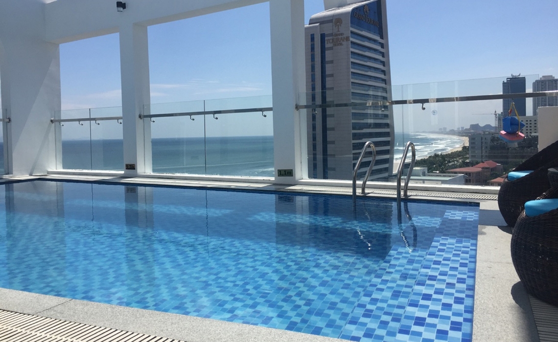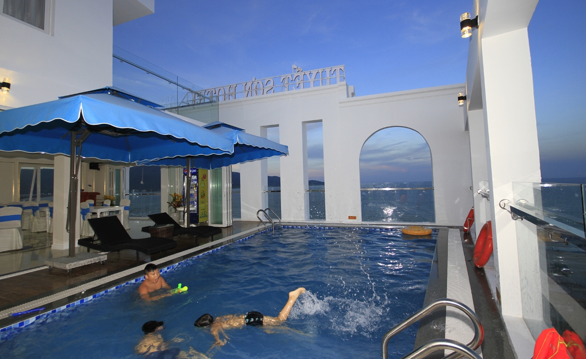 - Tọa lạc trên tầng cao nhất của khách sạn, nếu bạn có sở thích ngắm cảnh thành phố lung linh về đêm hay ngắm cảnh hoàng hôn dần xuống trên biển chiều thì Top Sky Bar sẽ là nơi đánh thức mọi giác quan của bạn.