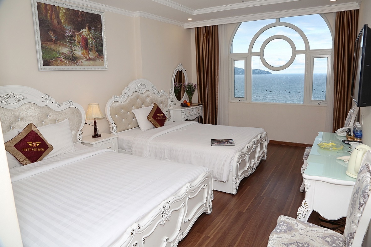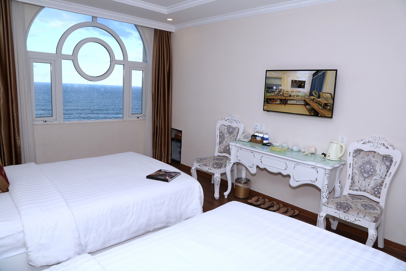 Phòng dành cho du khách rất rộng rãi, theo phong cách hiện đại sang trọng và luôn tạo cảm giác ấm cúng. Cửa sổ rộng rãi và nhìn trực diện ra bãi biển Mỹ Khê