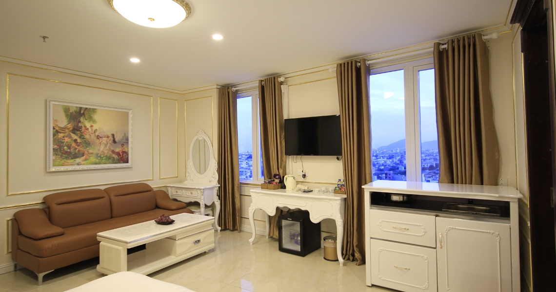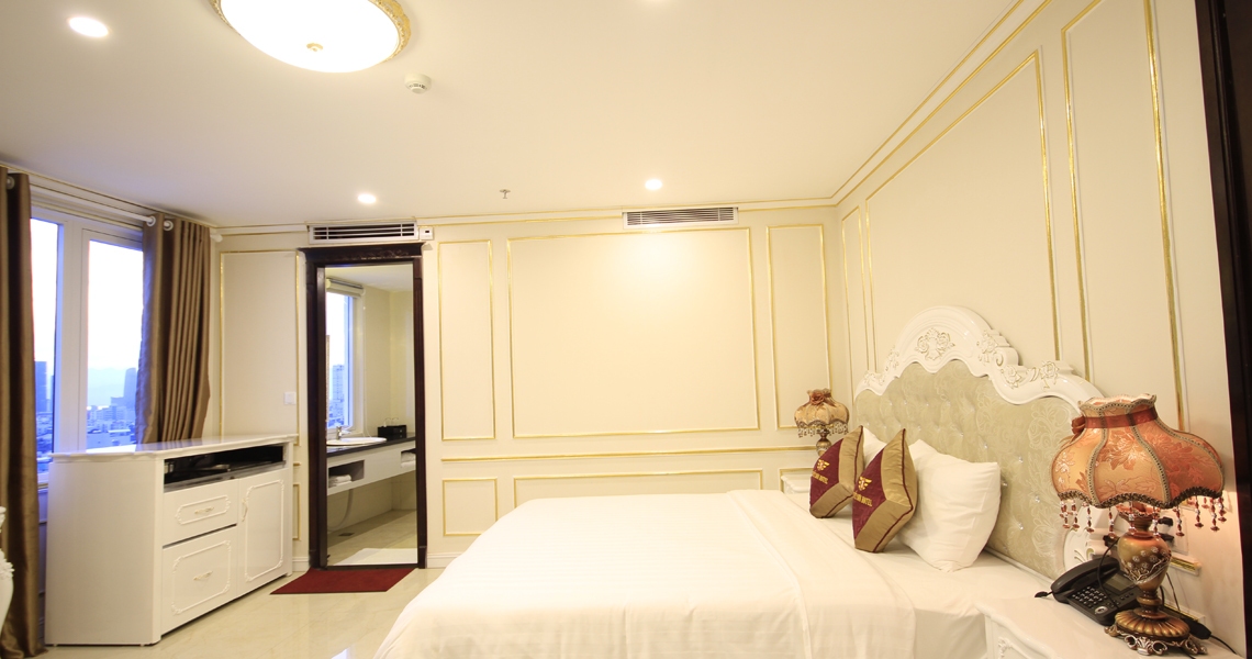 Phòng dành cho du khách rất rộng rãi, theo phong cách hiện đại sang trọng và luôn tạo cảm giác ấm cúng. Cửa sổ rộng rãi thoáng mát tầm nhìn thành phố biển Đà Nẵng xinh đẹp.