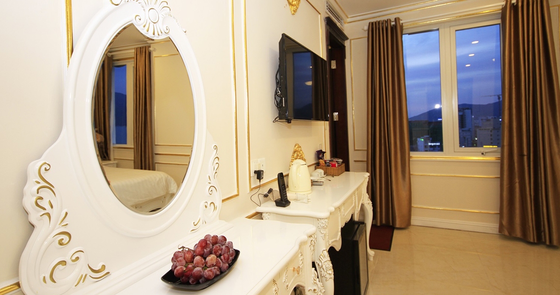 - Các phòng đều có cửa sổ thoáng mát và nhìn được chút xíu view biển hoặc nhìn đươc một nửa thành phố biển lung linh ánh đèn về đêm.